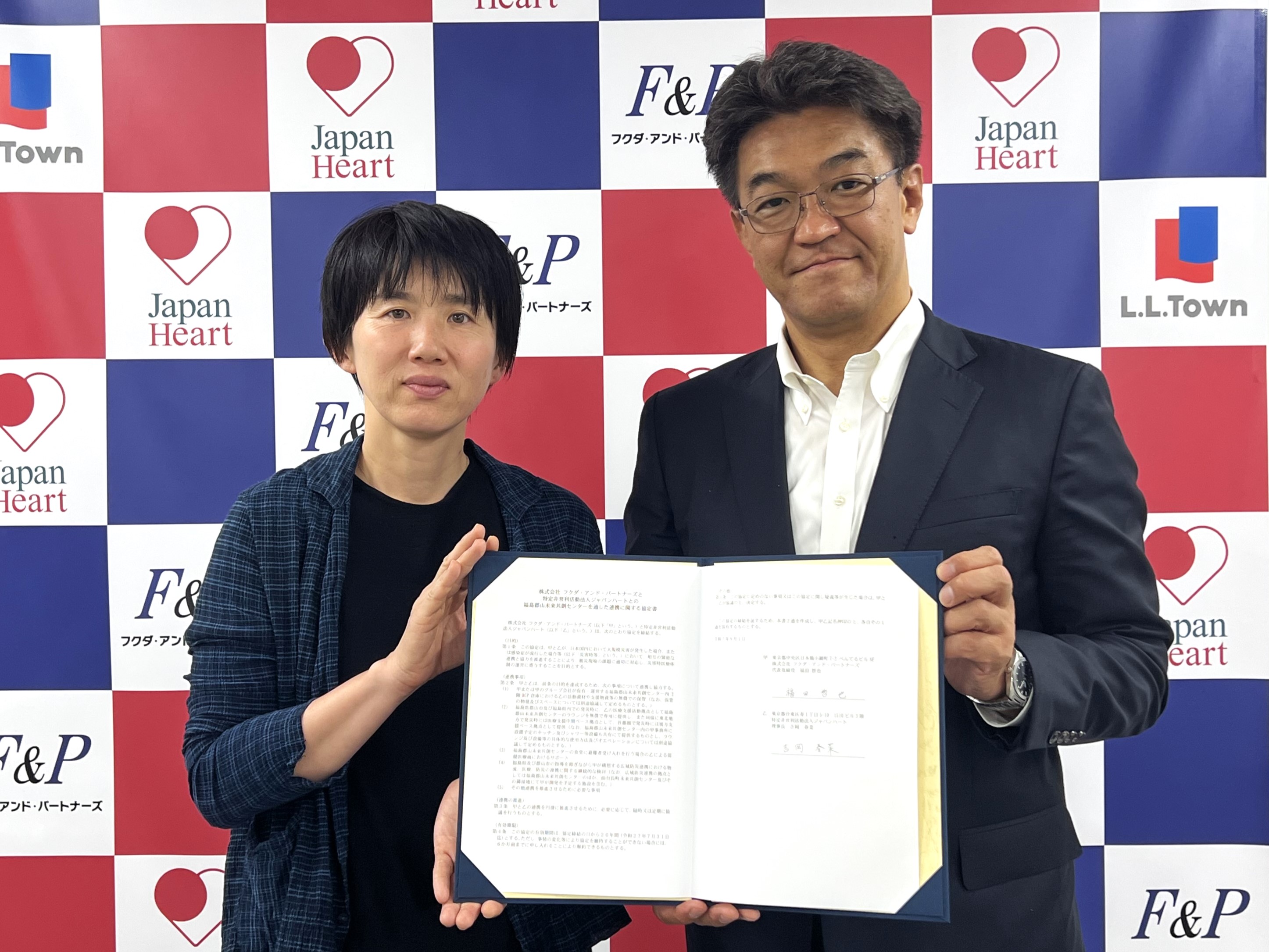 Fukuda and Partners Co.,Ltd. (Chuo-ku, Tokyo; President and CEO: Tetsuya Fukuda, hereinafter “the Company”) has signed a disaster support agreement in August 2025 with Japan Heart, an international medical NGO (NPO Corporation Japan Heart, Taito-ku, Tokyo; Chairman: Haruna Yoshioka, hereinafter “Japan Heart”), and established a disaster medical support base for Japan Heart within the “Fukushima Koriyama Future Co-Creation Center” of the “Fukushima Koriyama LL Town Building,” which was completed in October 2025.
