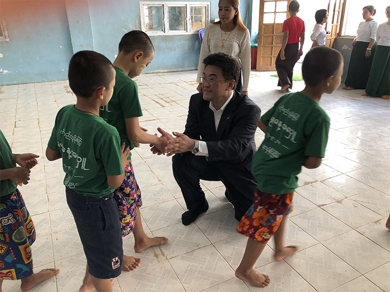 2019年11月13日にミャンマーにあるYADANAR BON YEIK NYEIN(僧院学校) を訪問し,学校贈呈賞を寄付しました。当日は校長と子供達に歓迎の歌で温かく迎えていただき、日本のキャンディーを子供達に贈りました。